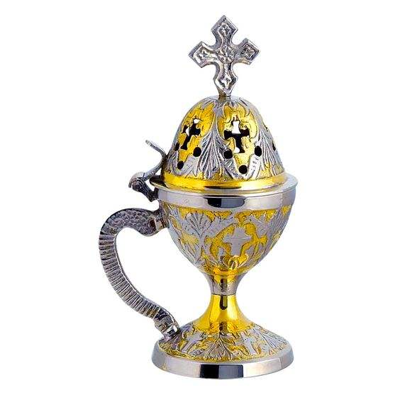 Antique Brass Incense Burner Cross On Top Hand Engrave Designer Vintage Style Brass Incensory Aromatherapy Diffuser And Burner