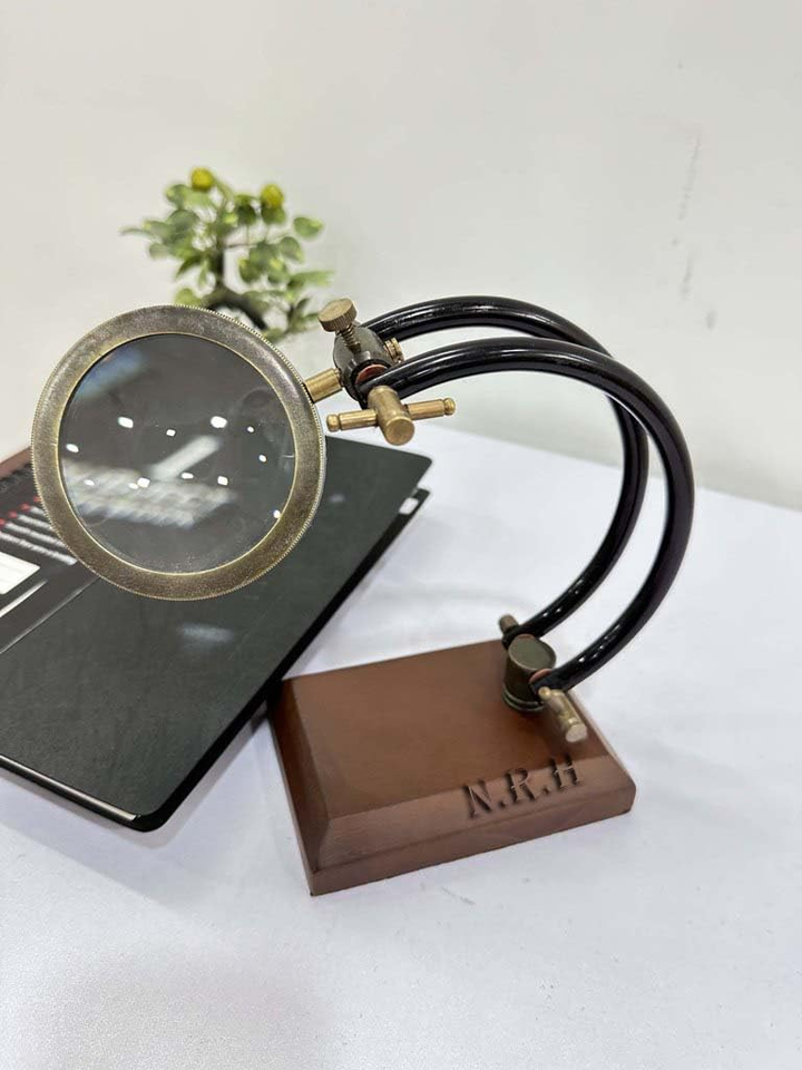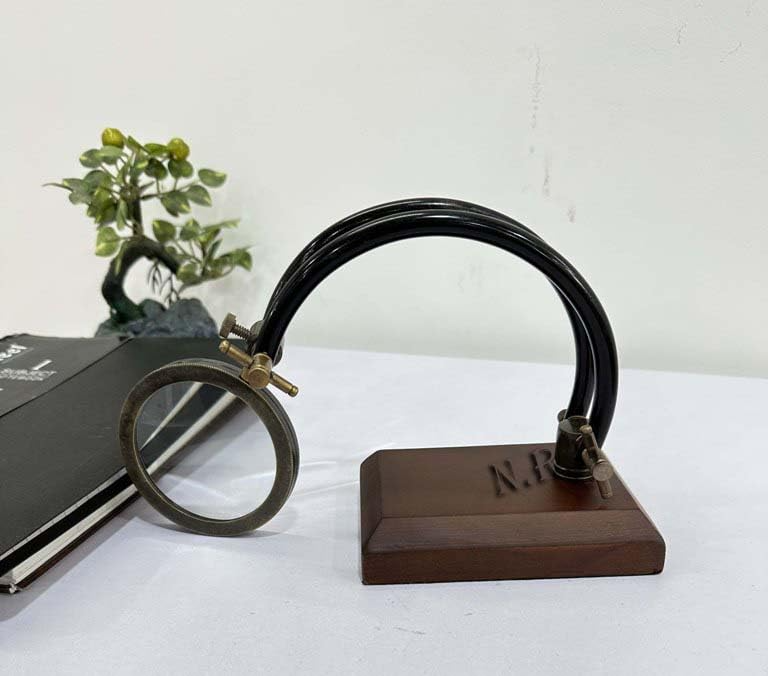 Antique Brass Magnifying Glass Desktop Lens Vintage Magnifier Two Tone Polished Magnifying Glass Desktop Accessory