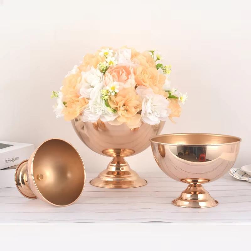 Antique Brass Pedestal Bowl Vintage Wedding Centerpiece Mini Gold Flower Arrangement Pots Metal Vases Table Decorations Living
