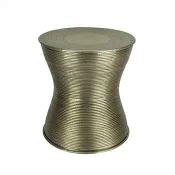 Antique Brass Ribbed Metal Side Table | Hourglass Textured Accent Table | Modern Gold Corrugated Pedestal Table Home Decor