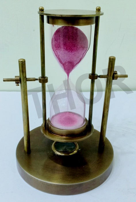 Antique Brass Sand Timer 5 Minute Maritime Compass Hourglass Modern Design Glass Office Decorative Collectible Table Decor
