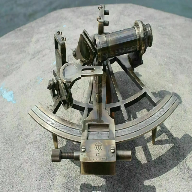 Antique Brass Sextant Vintage Nautical Metal Craft | Polished Finish Collectible Astrolabe Sculpture for Ship Navigation Decor