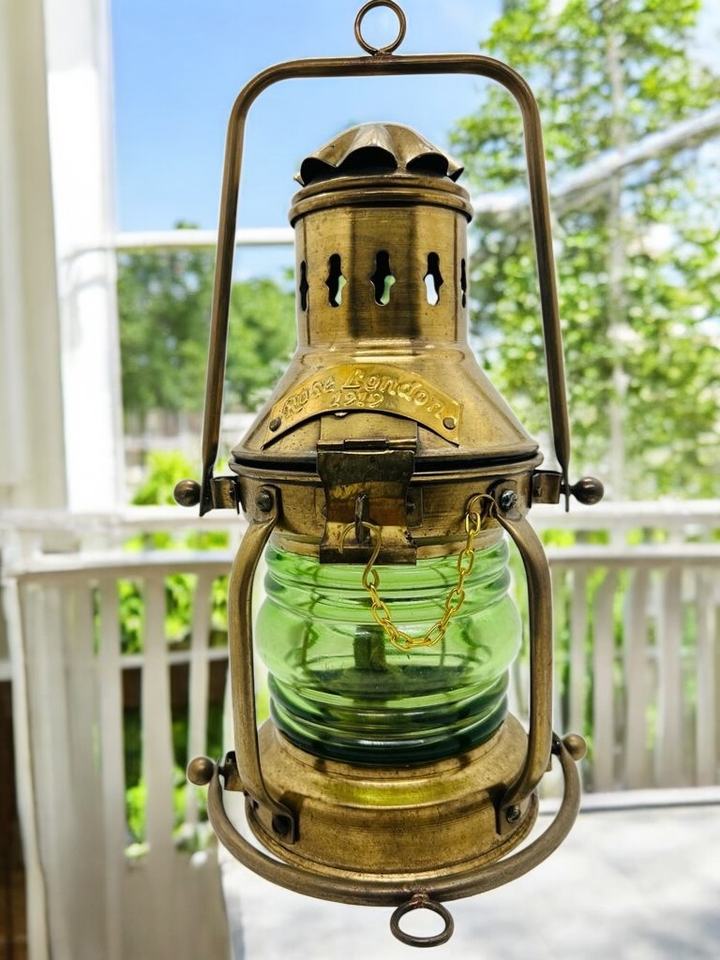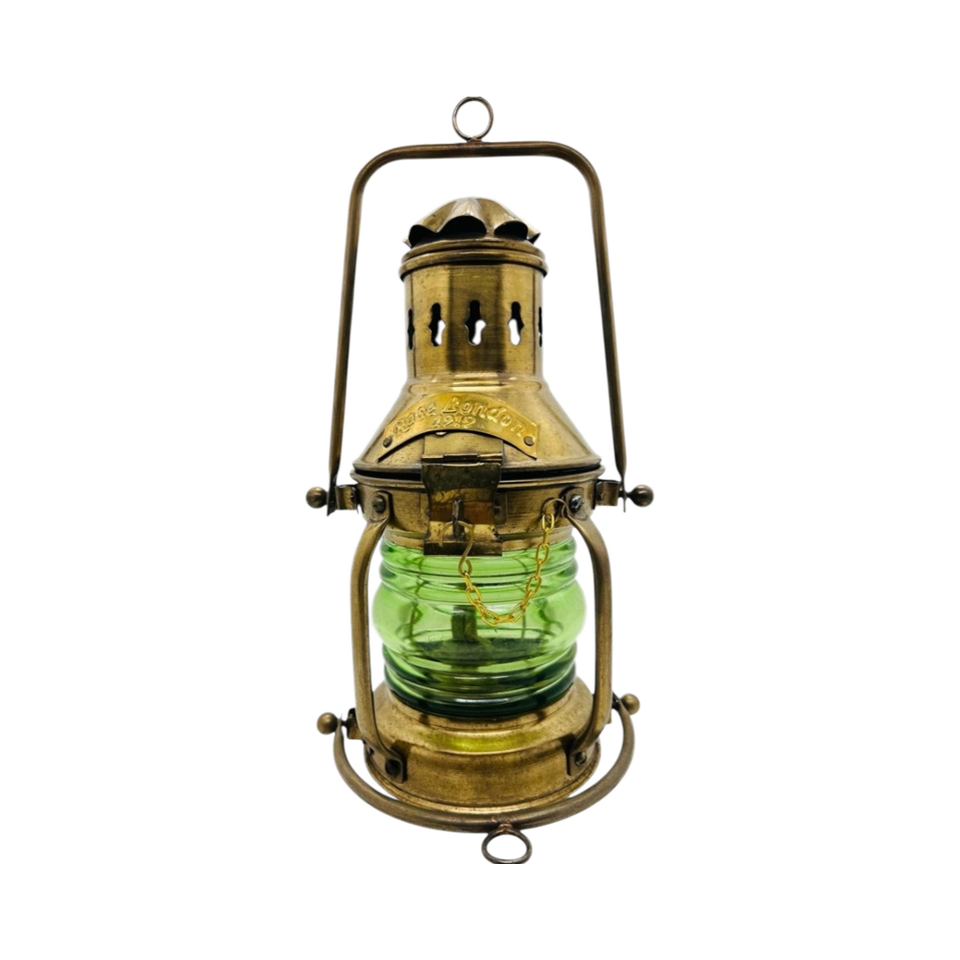 Antique Brass Ship Lantern Vintage Nautical Oil Lamp Green Glass Maritime Hanging Light Handmade Lead Decorative Home Decoration