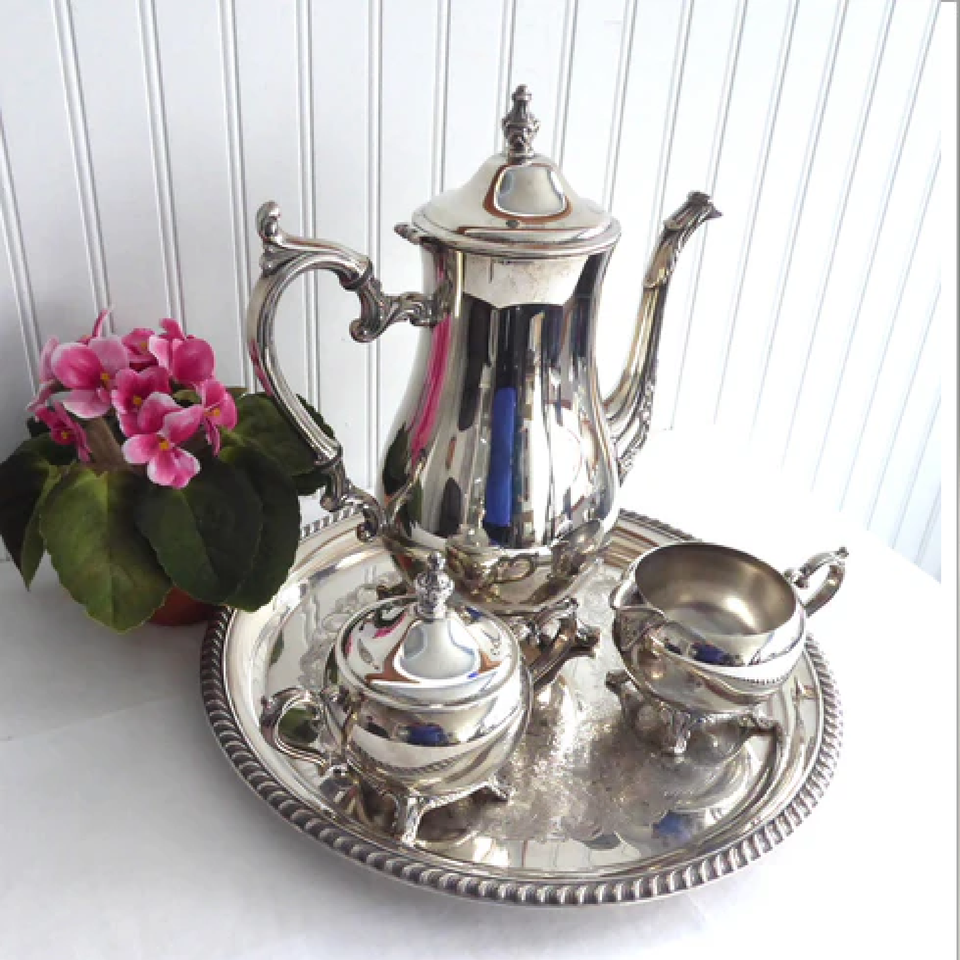 Antique Brass Silver Plated Wedding Gift Tea Set Coffee Set for Home Hotel Use at Wholesale Cheap Price From Indian Vendor