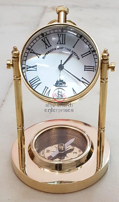 Size:Ht- 13.5cm, Clock Dia:- 2" & Compass Dia:-4cm & Base Dia:-7cm