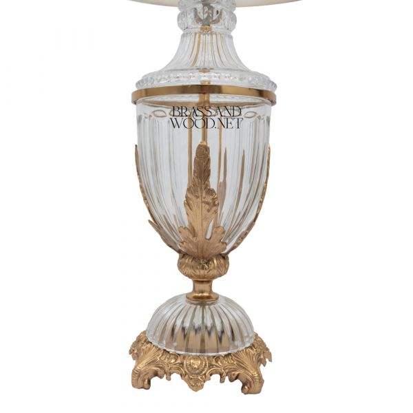 Antique Brass Table Lamp with Crystal Base and Elegant Fabric Shade for Classic Luxury Home Decoration