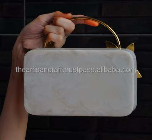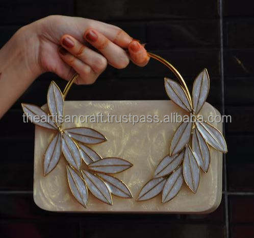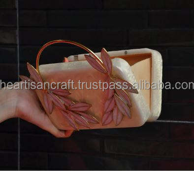 Antique Brass Top Handle Floral Resin Handbag Vintage Designer Wedding Bridesmaid Clutch Bag Fashionable Lady's Exclusive Bag