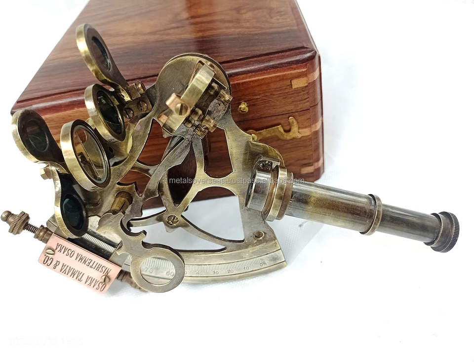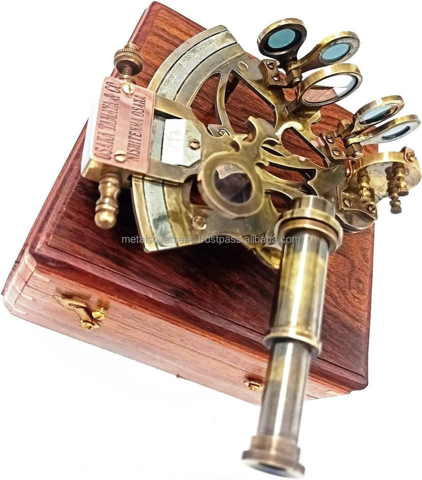 Antique Brass Polished Working Marine Sextant | Vintage Nautical Collectible Astrolabe Ship Navigation Metal Craft Sculpture