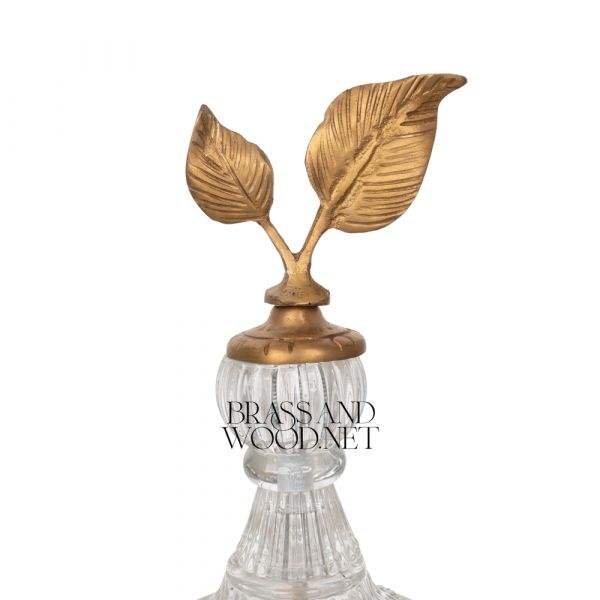 Antique Brass and Glass Decorative Vase with Ornate Handles Leaf Finial and Elegant Classic Base for Luxury Interiors