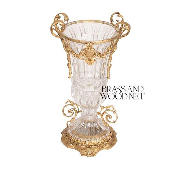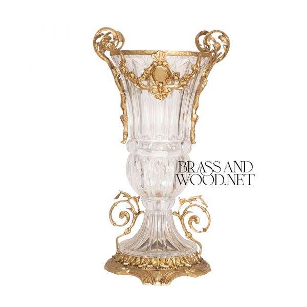 Antique Brass and Glass Vase with Ornate Golden Detailing Decorative Handles and Classic Fluted Base for Luxury Interiors