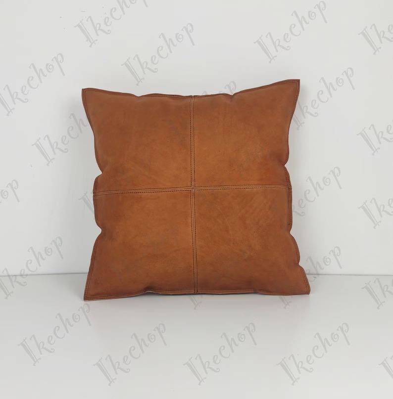 Antique Brown Lambskin Leather Cushion Cover Soft Plain Square Decorative Pillow for Home or Hotel for Christmas Decor