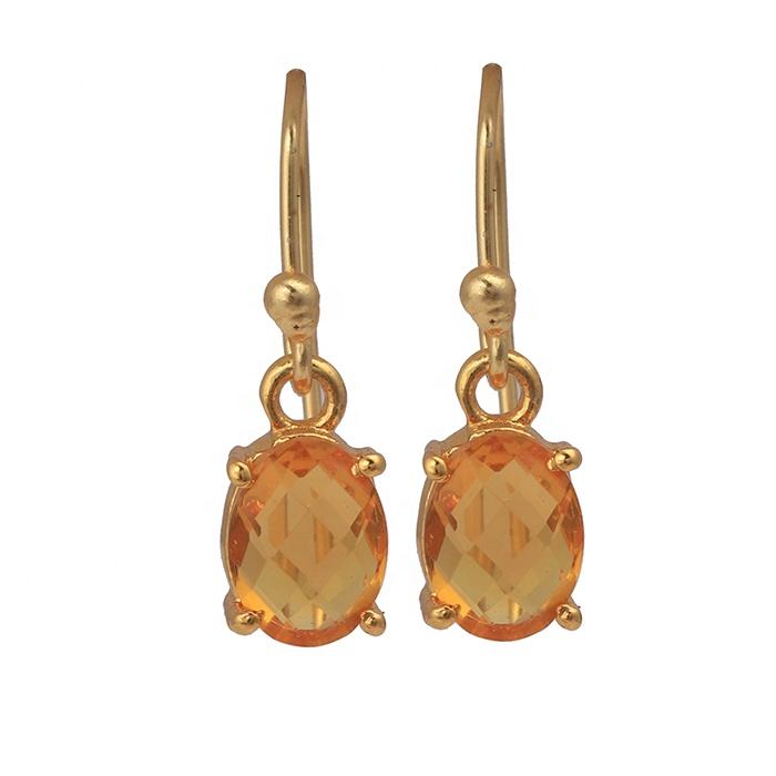 Antique Citrine Gemstone Earrings Simple Drop Prong Set Hook with Brass New Collection Tiny Dangle Jewelry for Wedding or Gift