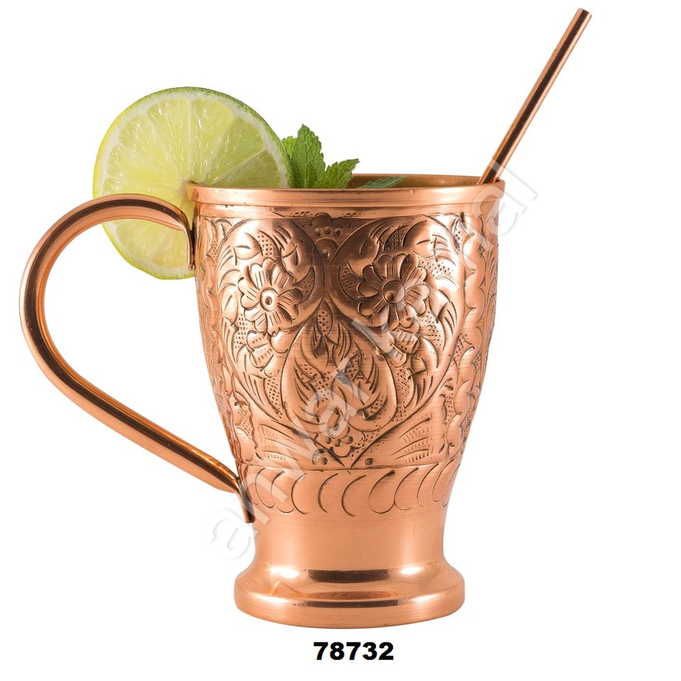 Antique Copper Moscow Mule Mug 16 oz Embossed Design Pure Copper & Solid Mug for More Drinking Water