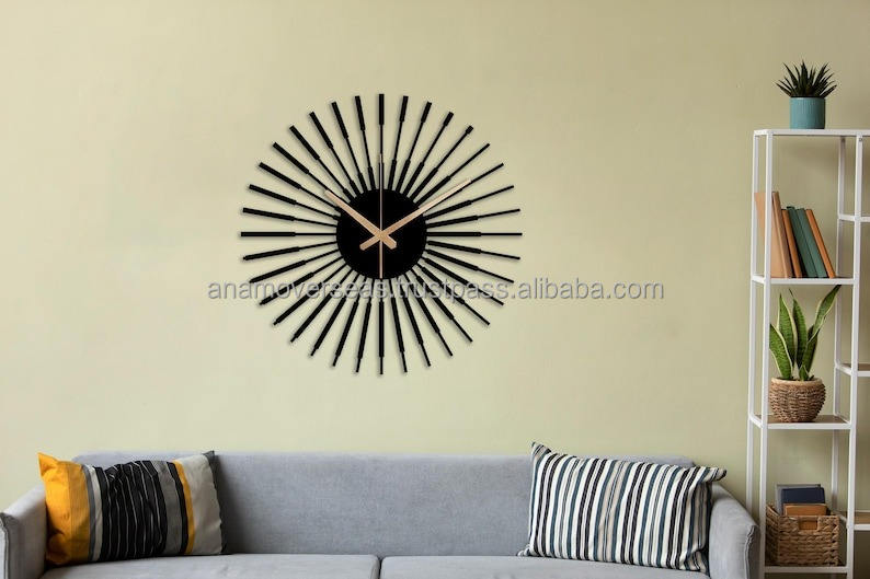Antique Copper Sunburst Wall Clock Rustic Metal Modern Retro Design Unique Wall Clock for Home Decor