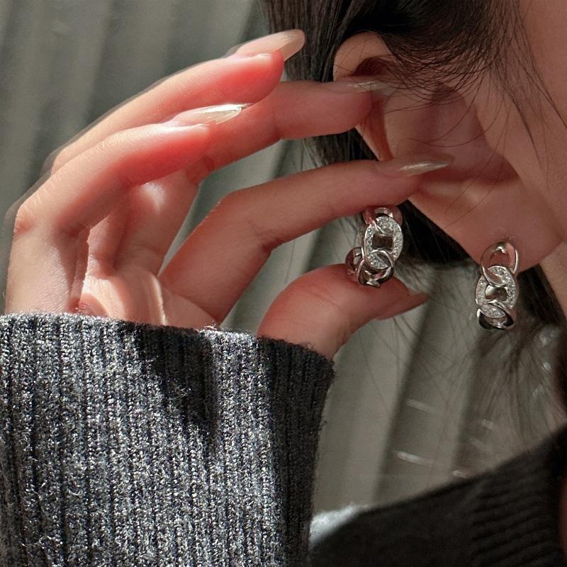Antique Curved S925 Pure Silver Earrings Elegant French Temperament with Micro Inlaid Circular Crystal Vintage Light Jewelry