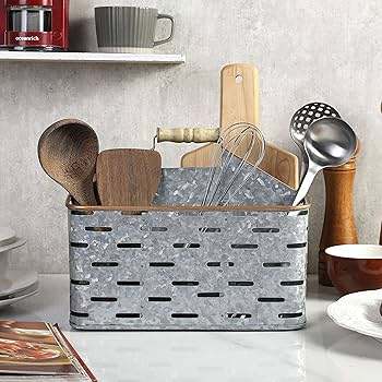 Antique Decorative Galvanized Cutlery Holder Tabletop Kitchen Utensils Holder Forks Spoons & Knives Cutlery Holder