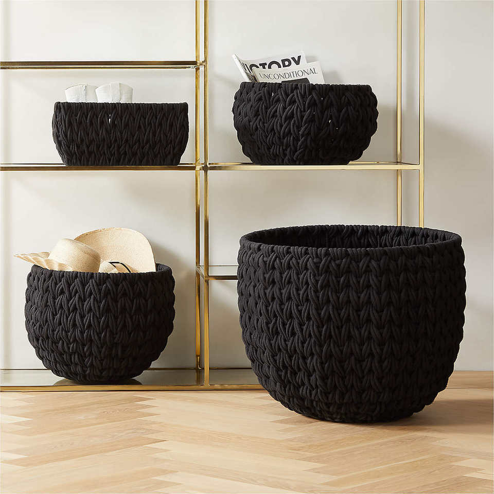 Antique Design Cotton Rope Basket Black Color Round Shape for Multipurpose Use Hot Sale Cotton Fabric Rope Basket Manufacturer