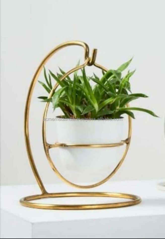 Antique Style Garden Planter With Three Brass Color Pot Holders Perfect For Indoor And Outdoor Use Elegant Home Decoration