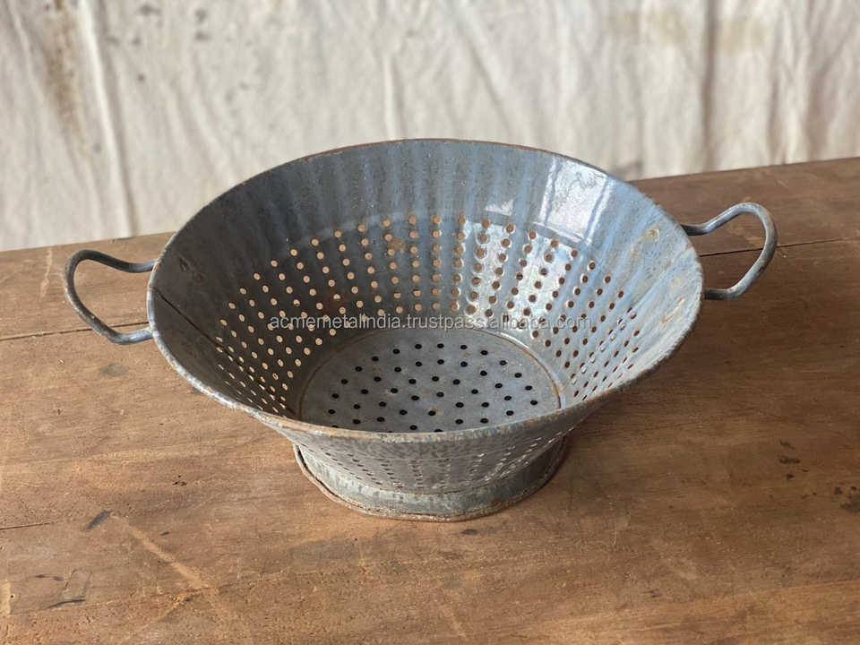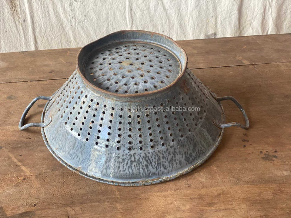 Antique Design Granite Colander Rustic Farmhouse Kitchenware Tableware Rice Washing Strainer Kitchen Utensil Tool Metal Strainer