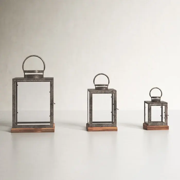 Antique Design Gray Powder Coted Lantern Metal Candle Lanterns for Home Decor Vintage Style Hanging Lantern