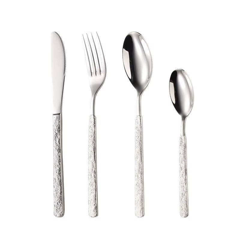 Antique Design Handles Silver Color Plated Stainless Steel Flatware Set Of 5 Fork Spoon Knife Dishwasher Safe Cutlery Sets