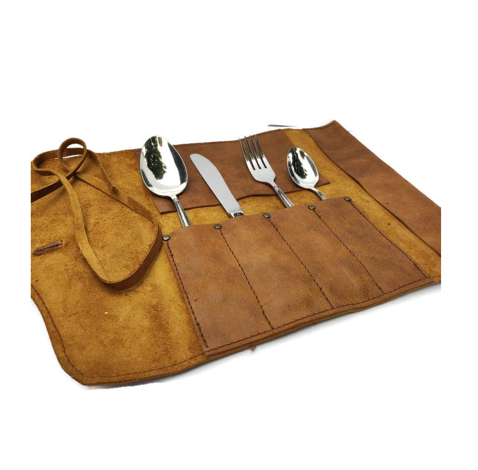 Antique Design Leather Spoon Cutlery Holder Kitchen Utensil Holder Mirrored steel Holder and Handmade Use Product