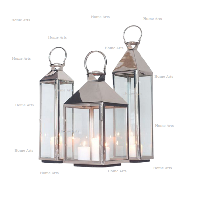Metal And Glass Silver Color Hanging Lantern Set Of Three Different Size Hanging Lantern For Home Hotel Decor