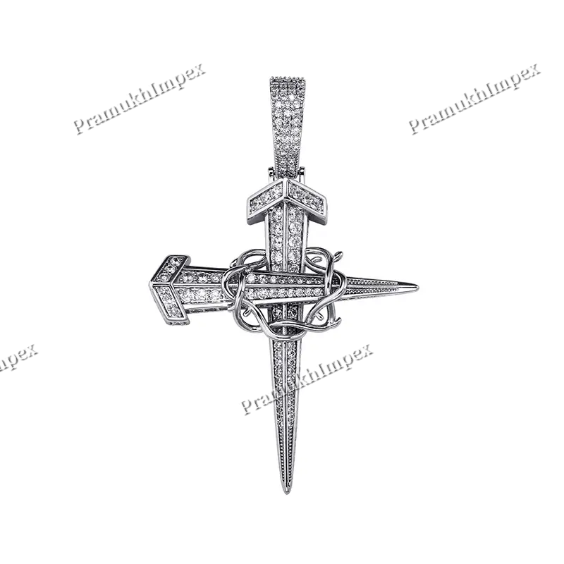 Customized Moissanite Cross and Thorns Pendant Sterling Silver Fully Iced Out Hip Hop Pendant Necklace Jewelry for Men And Women