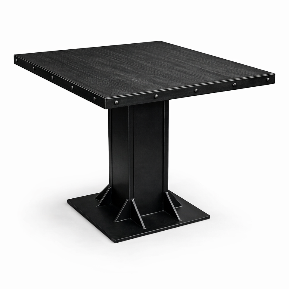 Solid Wood Modern Industrial Cafe Dining Table | Square Bistro Table with Metal Base Multiple Sizes & Colors Rajasthan Origin