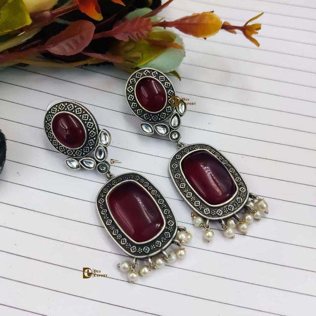 Antique Design Silver Look Like Replica Monalisa Stone Stud Earrings Gift for Casual Party Wear Handmade Bulk Product