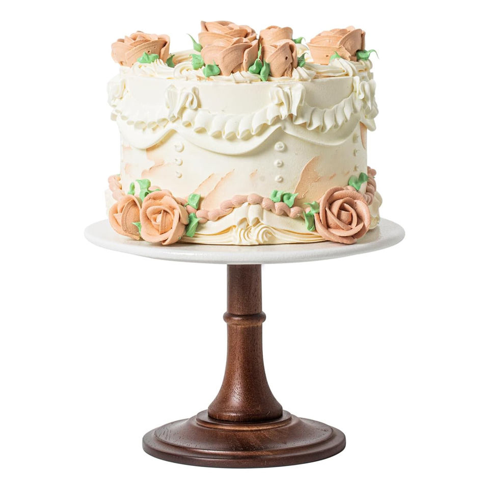 Antique Design Wooden Cake Stand Natural Acacia Wood Round Cake Display Pedestal Stand for Home Decoration & Birthday Party