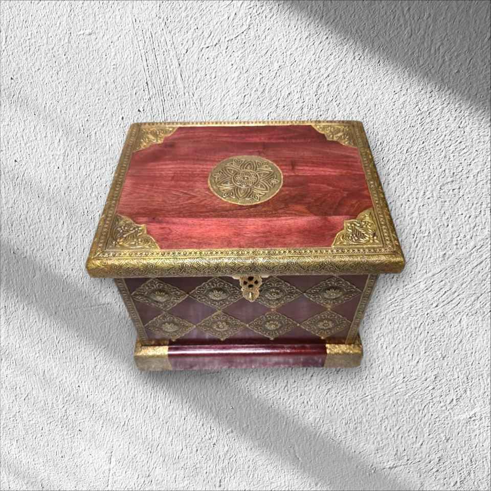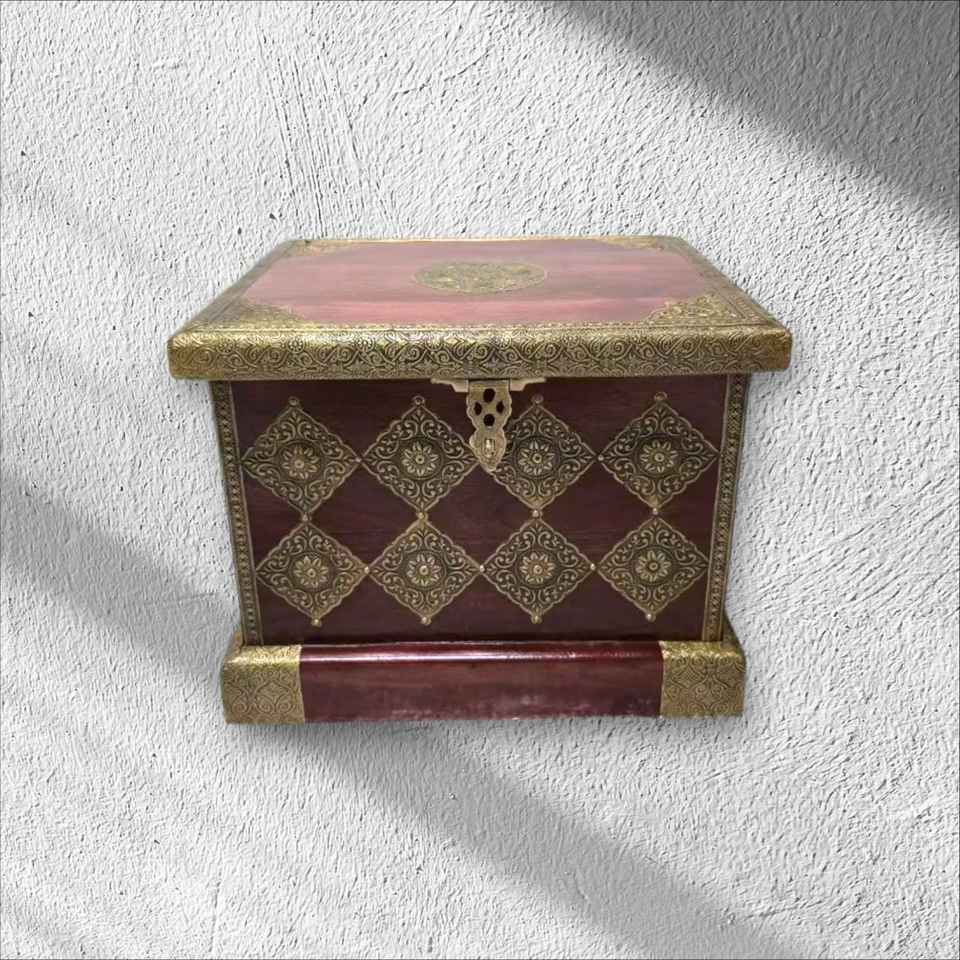 Antique Design Wooden Trunk with Pure Brass Fine Solvent Finish for Jewelry Storage