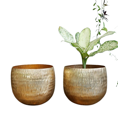 Antique Designing Flower Planter Gold Finished Best Quality Handmade Hammered Designing Metal Planter for Floor Decoration