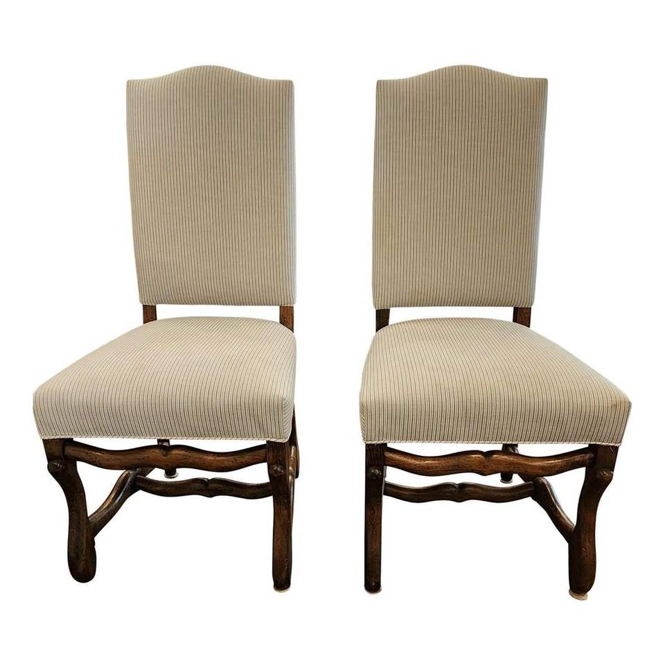 Description:Antique Dining Chair Wood Rustic Striped Upholstery Seat