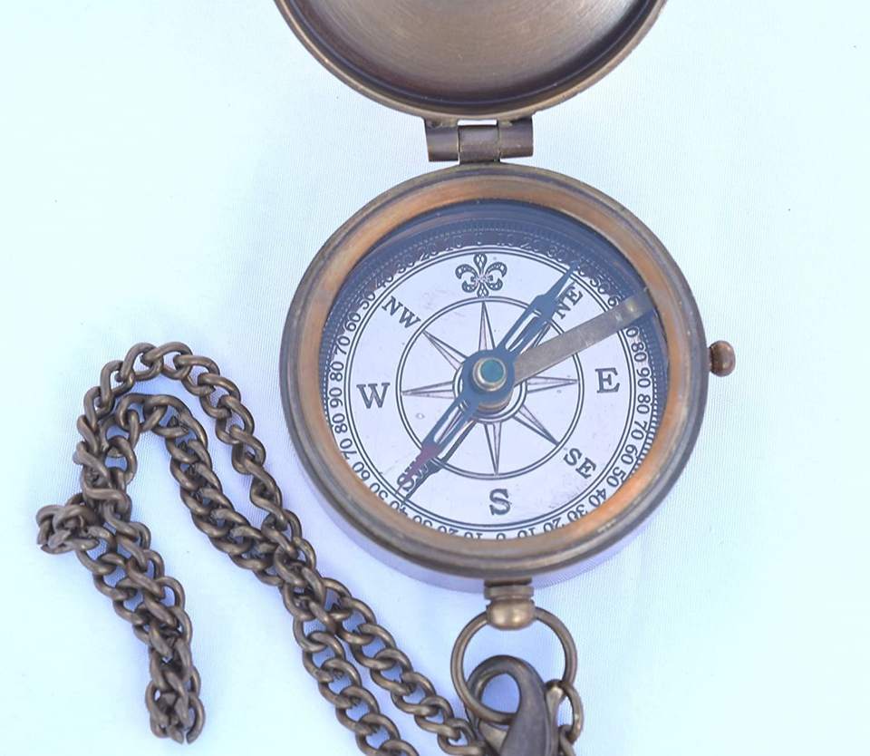 feature:Solid Brass Material, Magnetic Navigation Compass, Antique Finish, Handmade Product