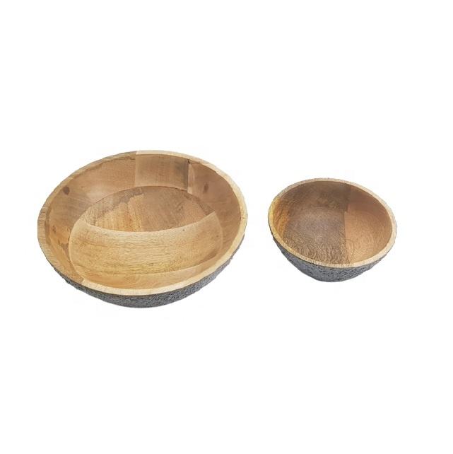 Antique Dough Bowl Grey Color Concrete Mango Wooden Bowl and Serving Spoons Set Decorative Fruit Bowl Creative Serving Set