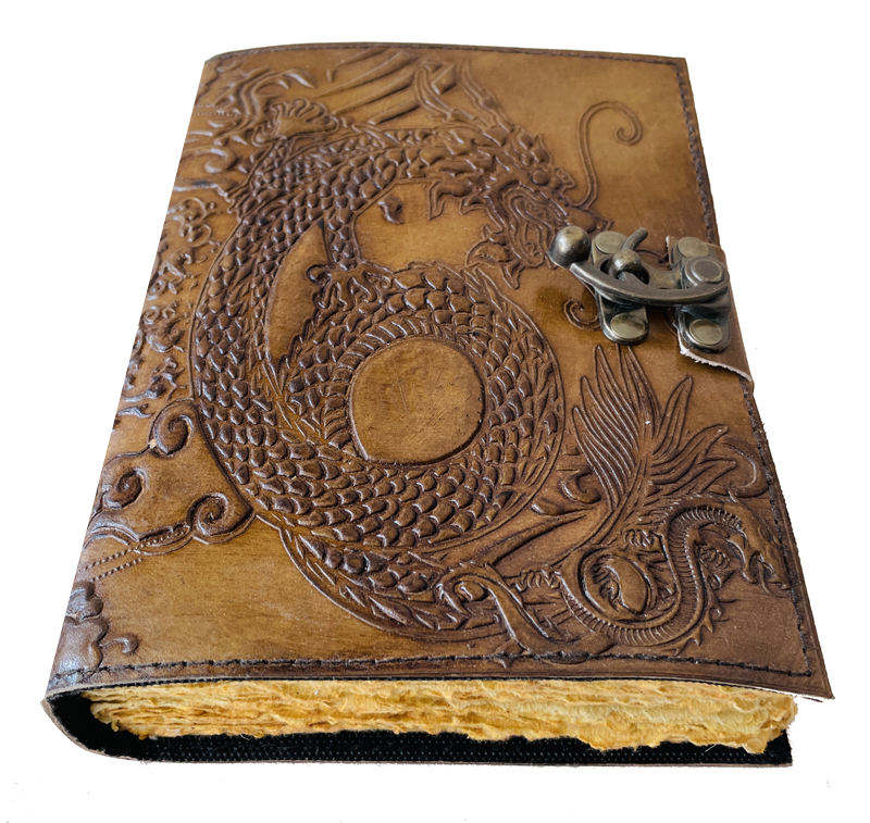 Antique Dragon Embossed Leather Diary Handmade Paper Journal with Lock Closure for Men & Women