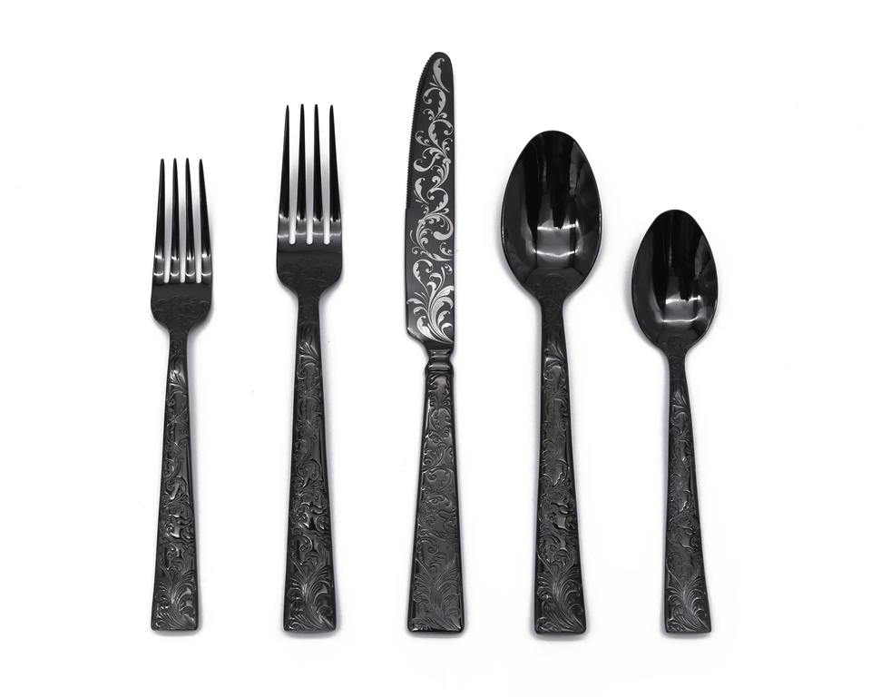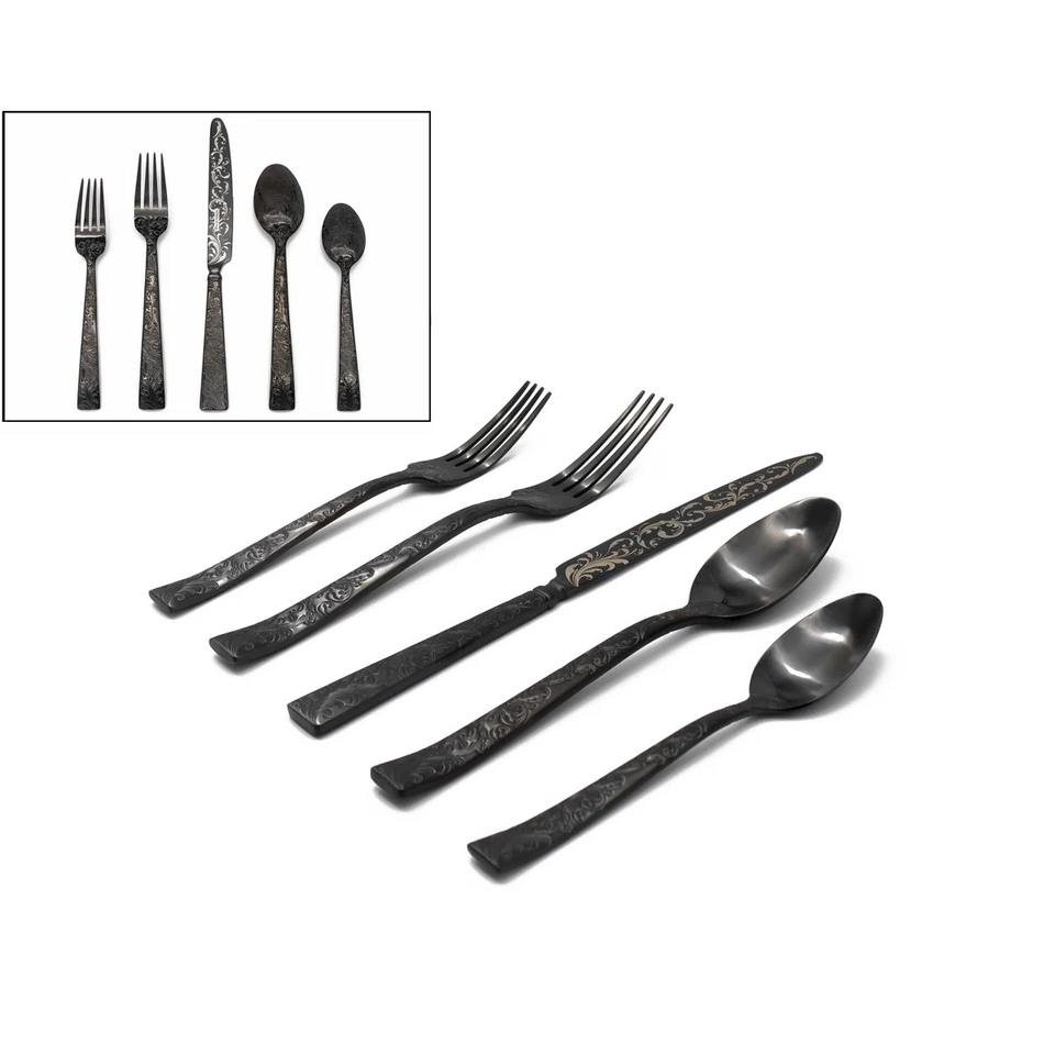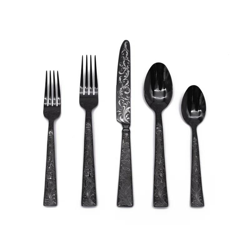 Antique Engraved Black Cutlery Set Luxury Stainless Steel Flatware For Modern Dining Table Home Restaurant Special Events