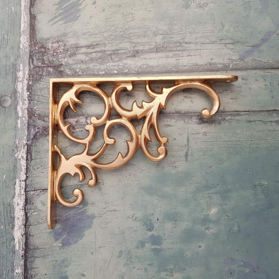 Antique Finish Brass Shelf Bracket Classic Decorative Support For Wooden Shelves Home Library Kitchen Interior Design