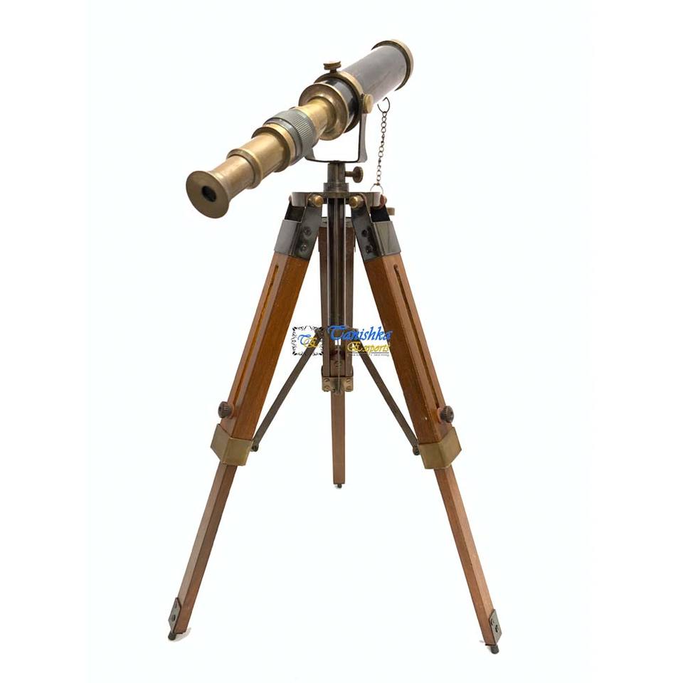 Antique Finish Nautical Brass Harbor Master Spyglass Telescopes With Wooden Tripod Stand Maritime Navigational Instrument