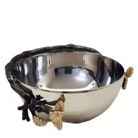 Antique Finished Metal Salad Bowl With Stand Home ware Decorative Dessert Fruit Serving Bowl