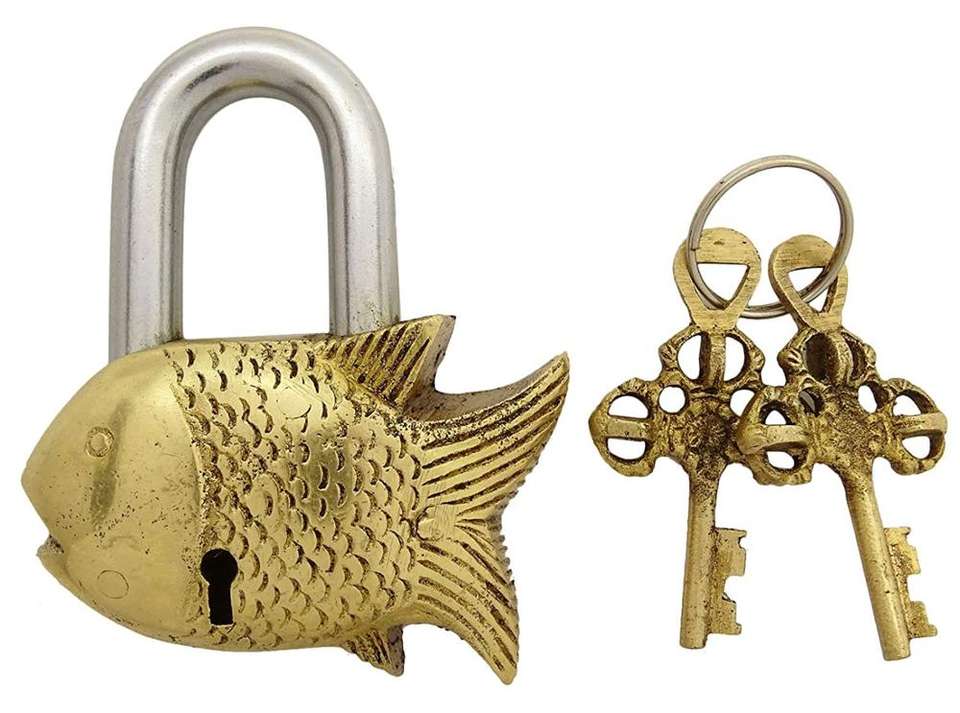 Antique Finishing Beautiful Brass Fish Padlock Best Quality Handicraft for Home Decoration Solid Brass Durable Key Directly