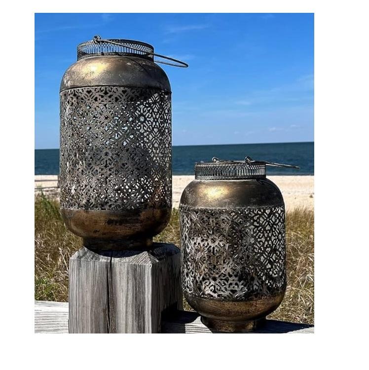 Antique Finishing Metal Lantern For Home Hotel Decoration Table Lantern Home Balcony Decoration Hanging Candle Lantern Set of 2