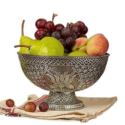 Antique Floral Embossed Silver-Plated Brass Metal Fruit Bowl Customized Technique Classic Tabletop Display Dry Fruit Chocolate