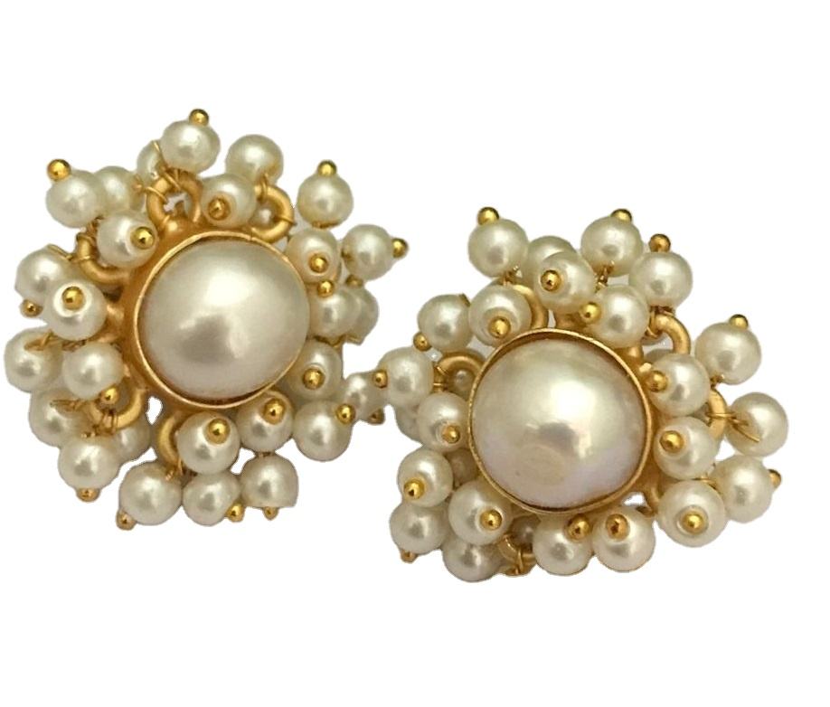 Antique Fusion Earrings Trending Baroque Real Pearls Stud Style Gold Plated Brass Fashion Jewellery for Parties