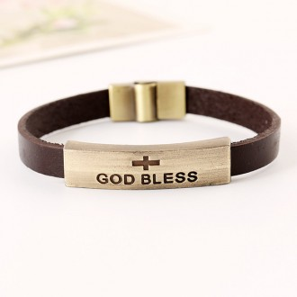 Antique God Bless Bracelet Fine Jewelry Set in Vintage Leather