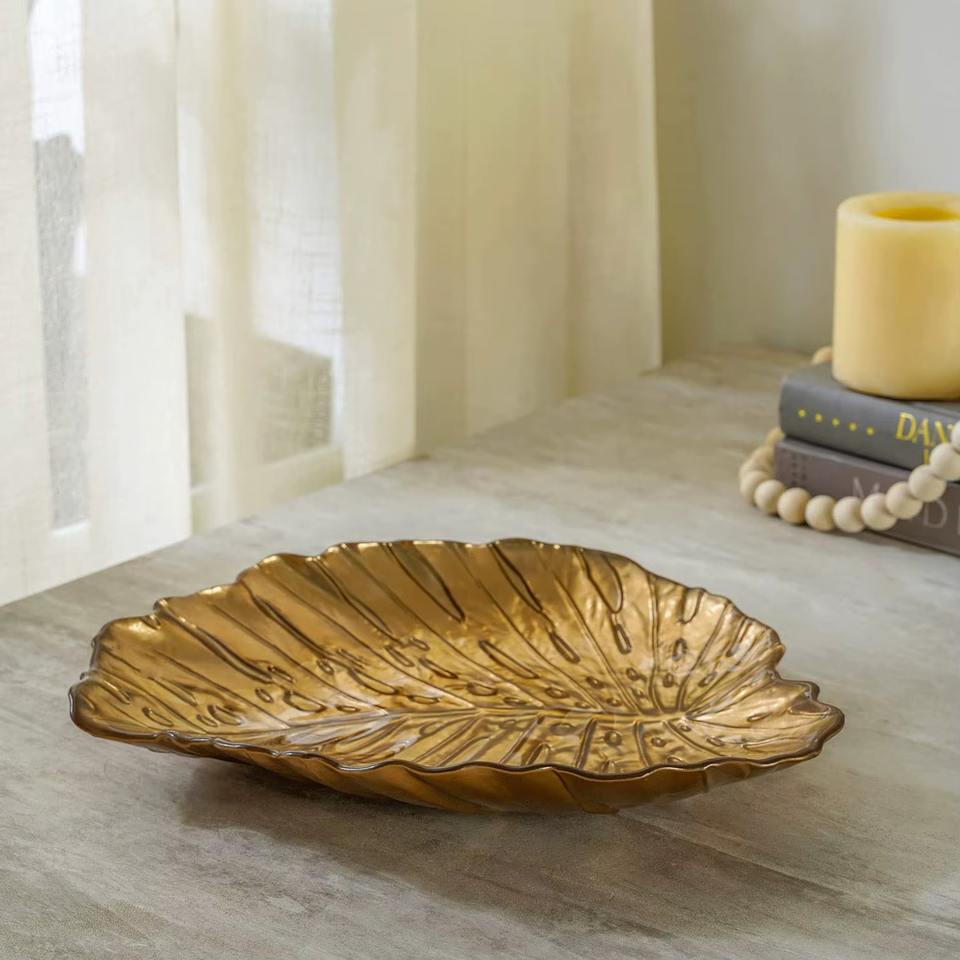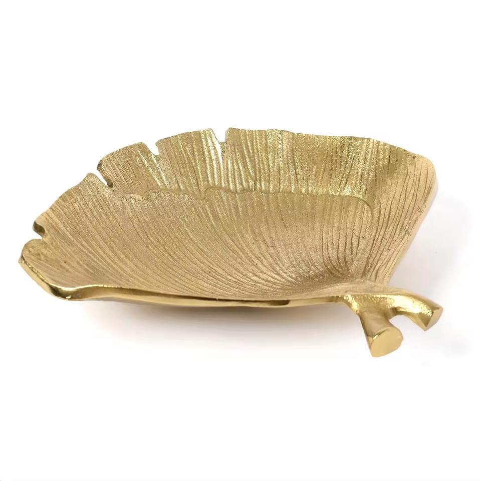 Antique Gold Aluminium Leaf Shape Bowls Eco-Friendly Dishes and Trays for Home and Hotel Decor Plate Dish Type