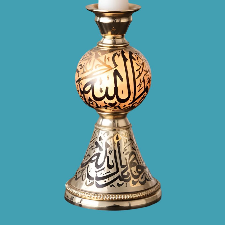 Antique Gold Calligraphy Candlestick Holder Unique Home Decor Gift for Culture Enthusiasts Refined Design Metal Steel Materials