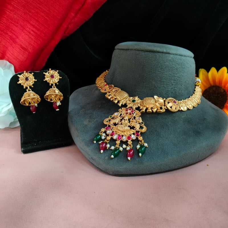 Antique Gold Finish Classic South Indian Temple Inspired Hanging Pearls Pendant Necklace Set Regal Look