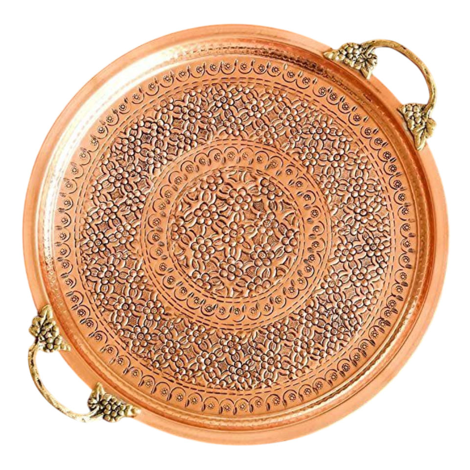 Antique Gold High Quality Decorating Metal Plate Round Handmade Finishing Moroccan Food Serving Tray Arabic Home Decor Tea Tray